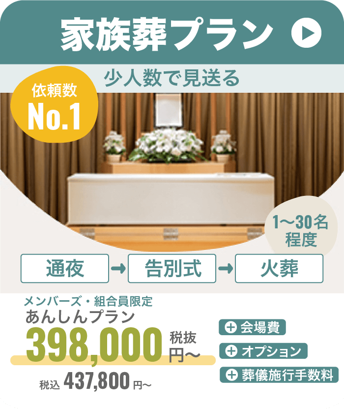 家族葬は主にご家族中心で通夜・告別式を 2日間で行う一般的なお葬式です。