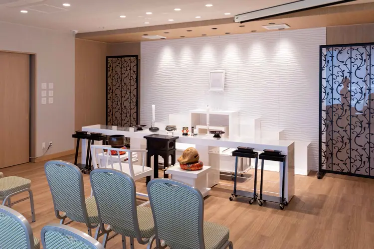| 施設設備 | 親族控室: 安置室:◯ 宿泊設備:◯ お風呂: 多目的トイレ:◯ Wi-Fi対応: 飲食の持ち込み:可 喪服レンタル: 託児所: |